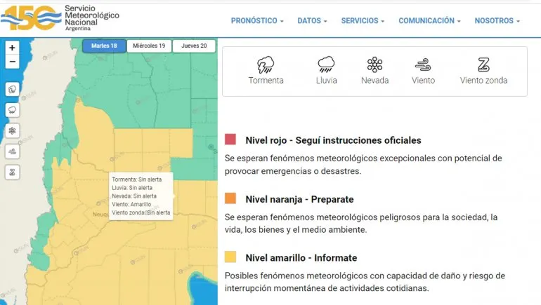 De acuerdo al Servicio Meteorológico Nacional (SMN), la alerta amarilla implica posibles fenómenos meteorológicos con capacidad de daño y riesgo de interrupción momentánea de actividades cotidianas. Habrá viento fuerte de más de 40 kilómetros por hora durante toda la jornada. Por la mañana estará mayormente nublado con una temperatura de 10 grados y ráfagas entre 60 y 69 kilómetros por hora. Por la tarde alcanzará la máxima de 18 grados con ráfagas entre 79 y 87 kilómetros por hora. Hacia la noche la temperatura descenderá a los 14 grados y las ráfagas estarán entre los 70 y 78 kilómetros por hora.