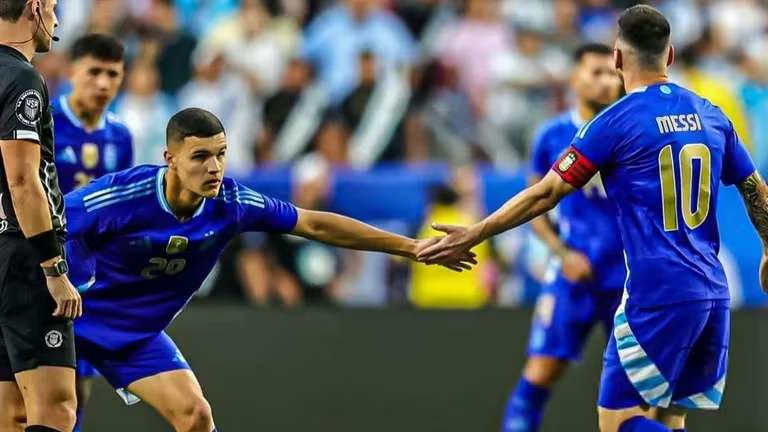 Valentín Carboni se suma a la lista de variables ofensivas a disposición del cuerpo técnico. Con solo 19 años, el futbolista con pasos por las Inferiores de Lanús, el primer equipo del Inter de Milán, el Monza y ahora a préstamo en el Olympique de Marsella fue la sorpresa de la convocatoria a la Copa América, muchos compañeros bromean por su vínculo cercano con Papi Scaloni y fue elogiado por Lionel Messi: “Me parece que tiene un presente y futuro bárbaro. Hay que aprovecharlo, así como muchos de los chicos que vienen con mucha fuerza”.