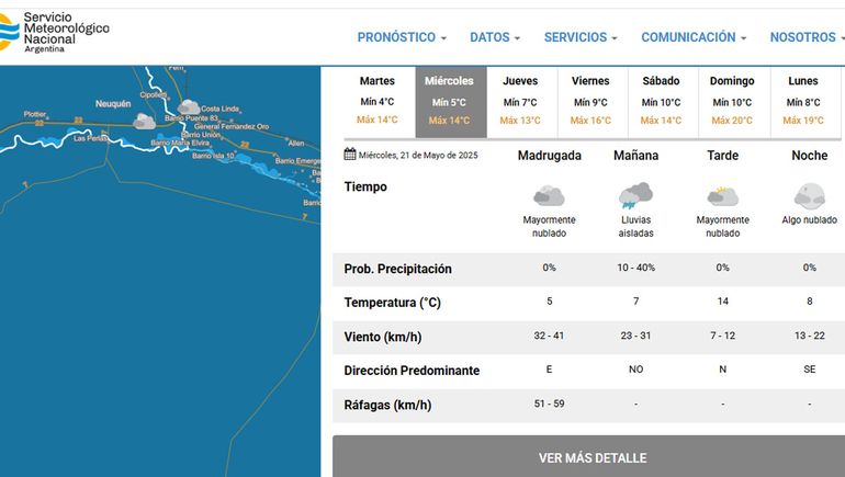 El pronóstico del SMN anticipa para el jueves otra jornada en la que el frío será el protagonista casi exclusivo. Por la madrugada estará apacible, algo nublado y con una temperatura de 7 grados. Por la mañana ascenderá levemente la temperatura a 7 grados bajo un cielo parcialmente nublado. En horas de la tarde habrá nubes y la temperatura alcanzará una máxima que no superará los 13 grados en la zona. Por la noche seguirá el cielo mayormente nublado y la temperatura descenderá a los 9 grados.